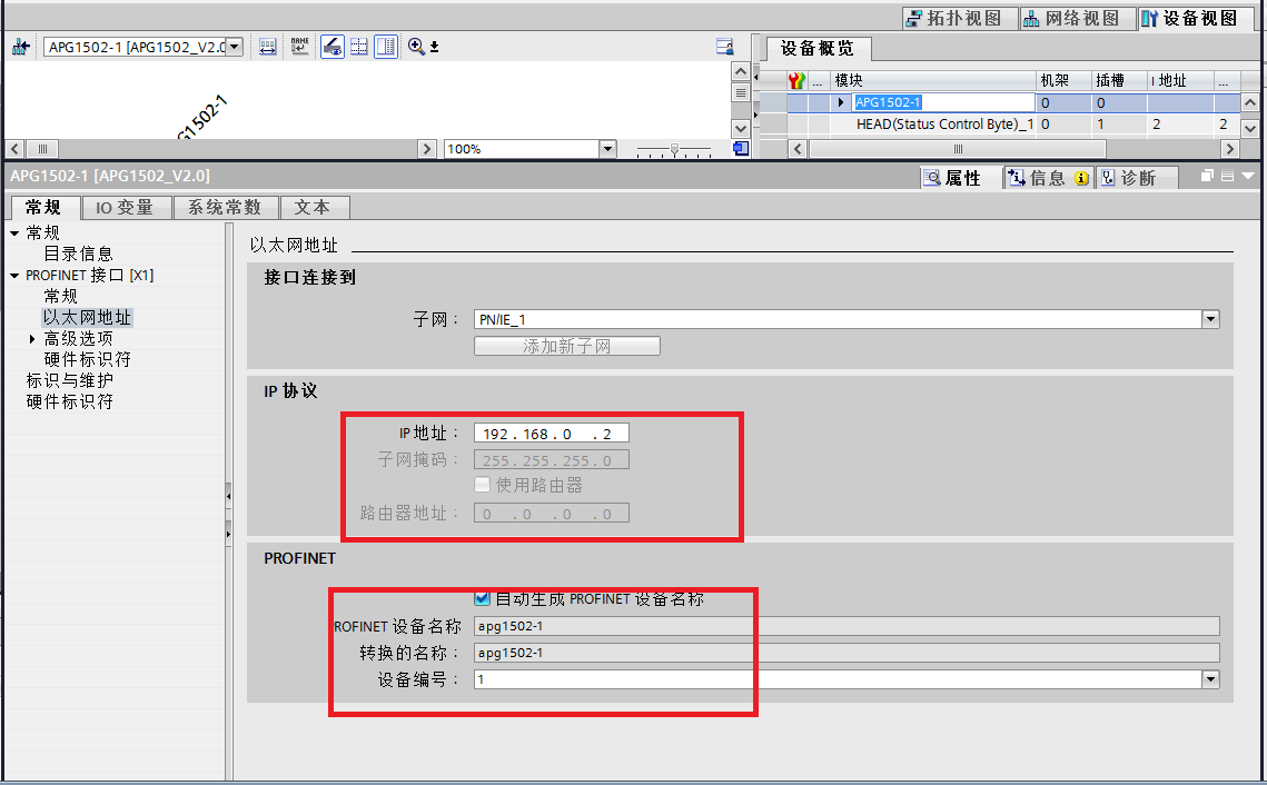 ④分布式IO名稱分配,點擊屬性,點開屬性以后,在以太網地址中的,查看IP地址和profinet設備名稱,如下圖所示