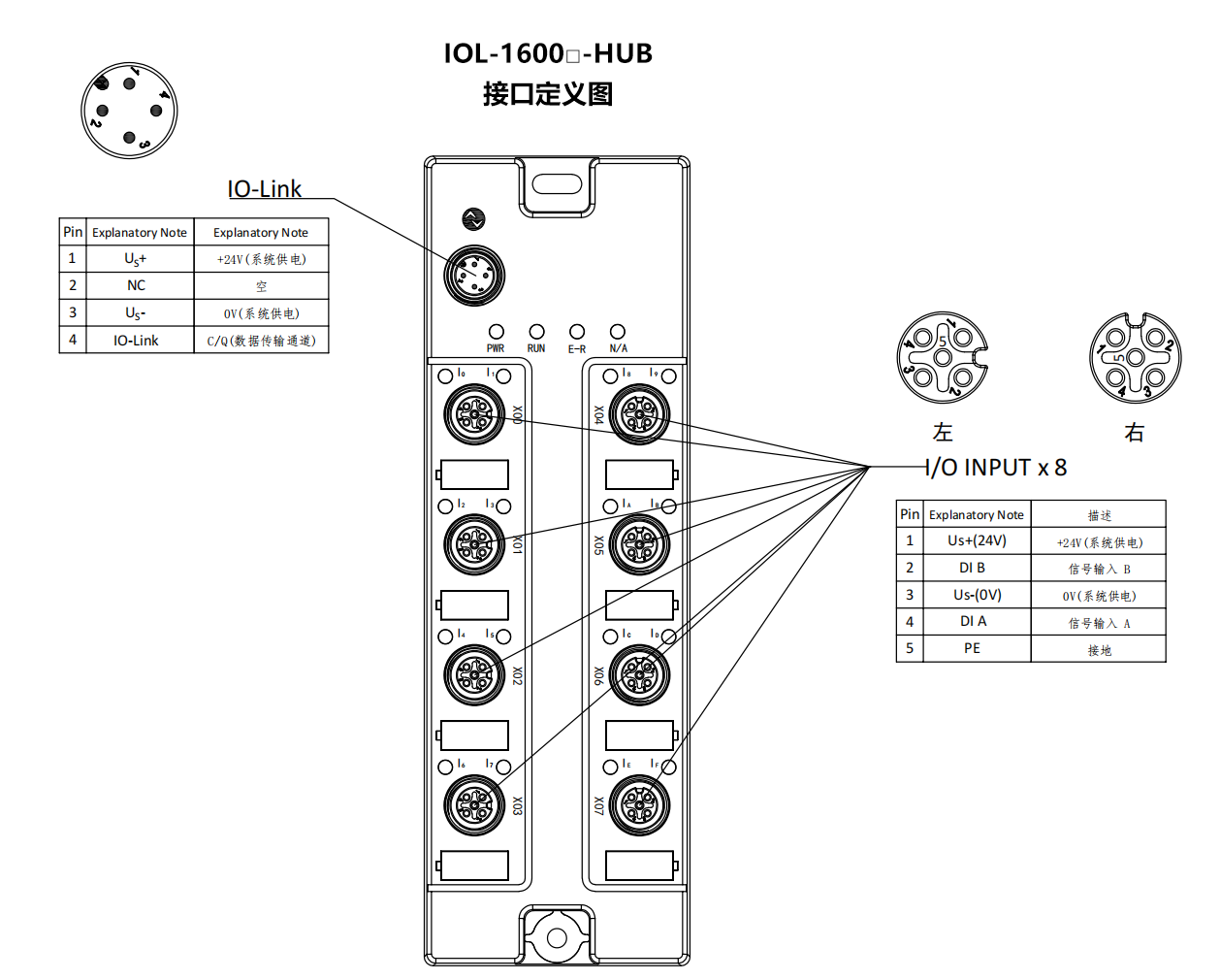 IO-Link從站,Class A,16DI_NPN,24VDC,IP67防護等級