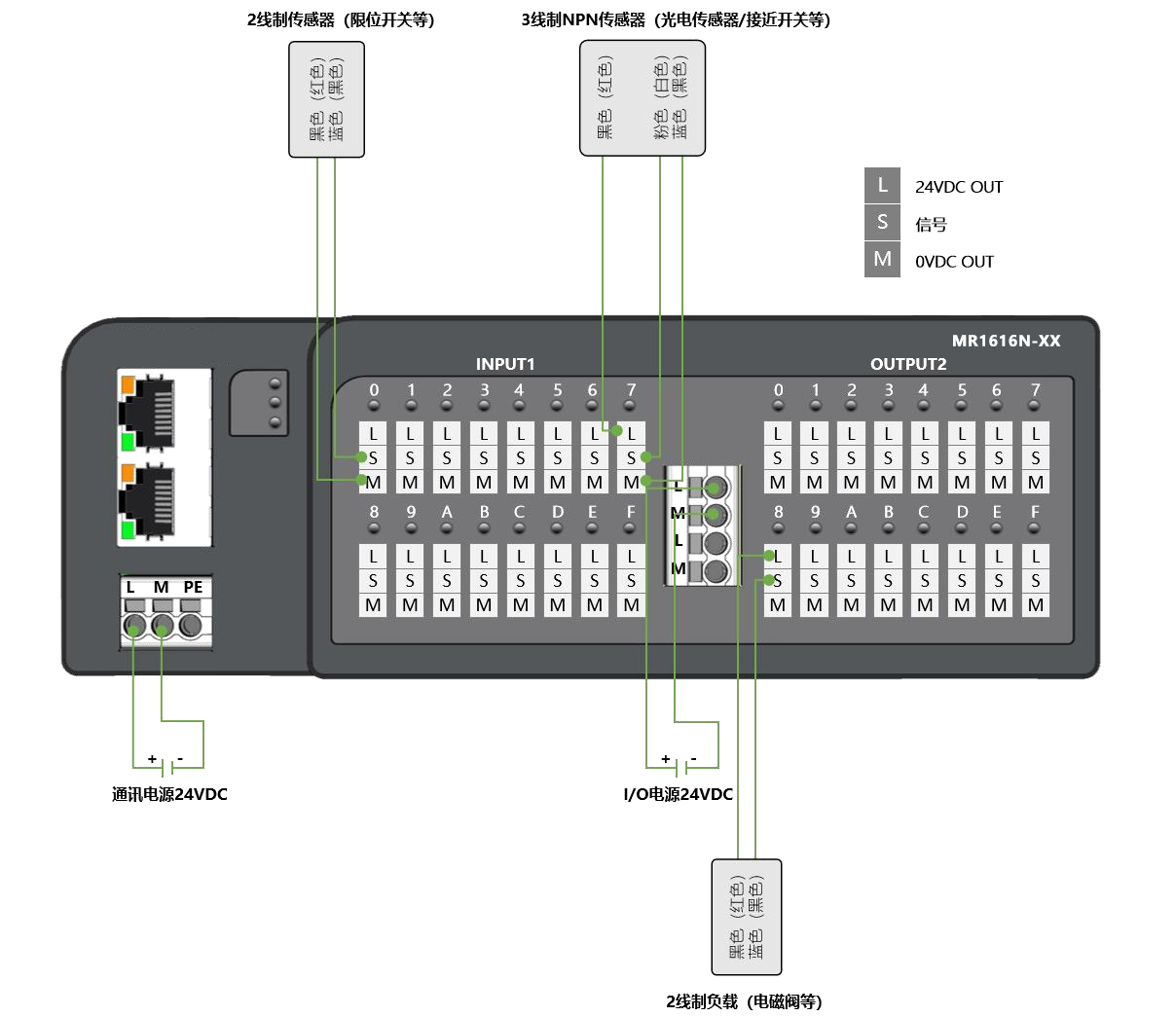 電源接口:模塊供電:3P歐式彈簧端子;負載供電:4P歐式彈簧端子