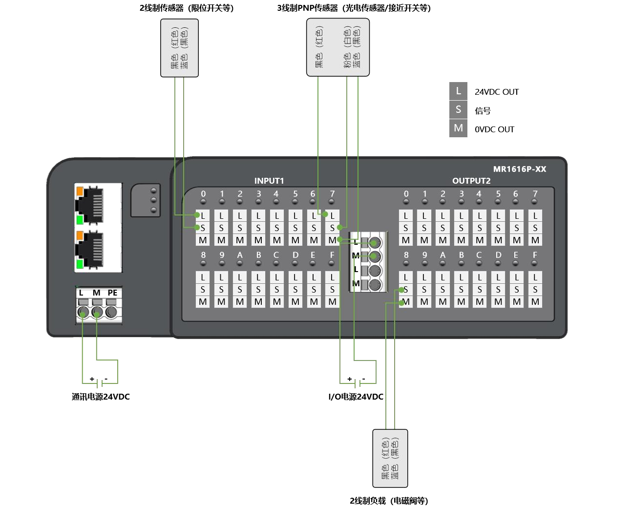電源接口:模塊供電:3P歐式彈簧端子;負載供電:4P歐式彈簧端子
