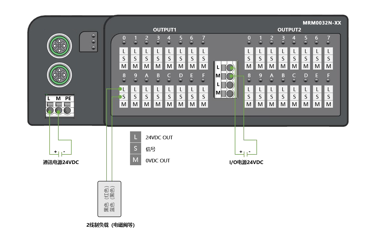 面板式快接線分布式I/O,EtherCAT通訊,2xRJ45,可級聯;數字量32出 NPN,24VDC,0.5A,歐式彈簧端子;導軌安裝&打孔安裝(下單時需備注)