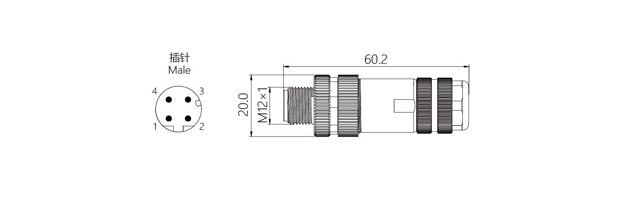規(guī)格描述:M12連接器,直型針,螺釘接線,D-Code,全金屬